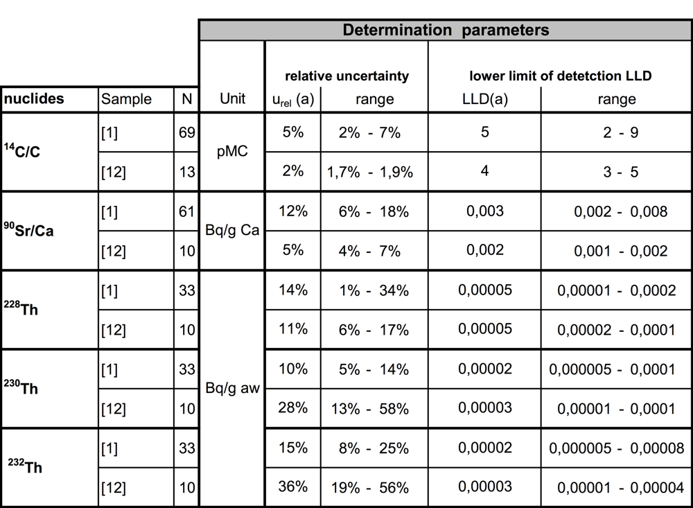 3.5 Quality criteria of the determination of the isotope profile of 14C/C and 90Sr/Ca and 228Th/232Th