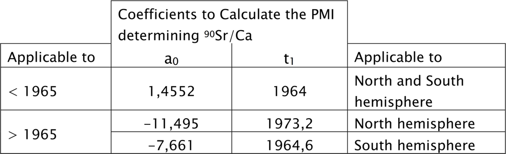 Table 3: Coefficients of the calibration function to determine TD (90Sr/Ca) within an interval of 1956 < TD < 2015.